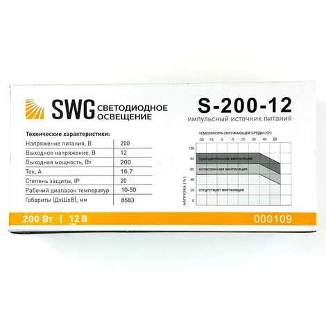 Блок питания 200W/12V, SWG, Узкий