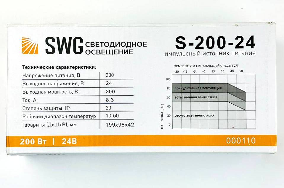 Блок питания 200W/24V, SWG, Узкий