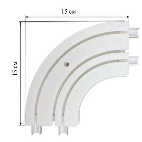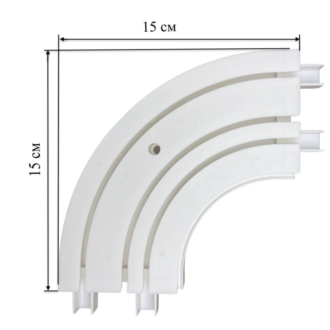 Соединитель угловой трёхрядный внутренний является готовым решением для карнизов с пластиковой шиной.