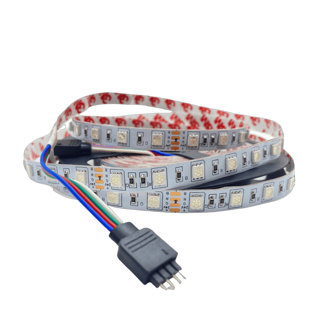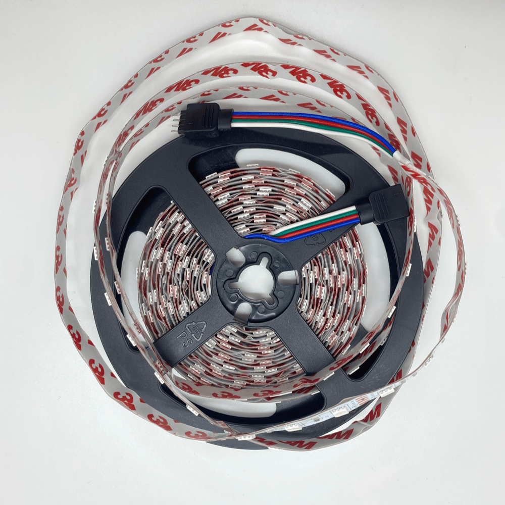 Светодиодная лента — это источник света, который представляет из себя гибкую печатную плату из диэлектрического материала (меди), толщиной не более 0,25 мм, покрытую защитным материалом , на которую равноудалено друг от друга установлены светодиоды. На плату нанесены дорожки которые проводят ток к светодиодам. С обратной стороны лента имеет самоклеящийся слой для монтажа на поверхность. Практически все светодиоды предназначены на низковольтное питание, поэтому их устанавливают в модули по 3, 6 светодиода (обычно), соединенных последовательно, а затем вся группа модулей через ограничивающий резистор подключается к блоку питания. Обычно лента наматывается в рулоны отрезками по 5м, а ее ширина от 5 до 30 мм.