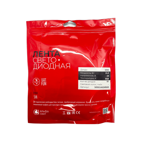 Лента светод. ALFA 3M, RGB 14.4W/24V/60led (5м.)