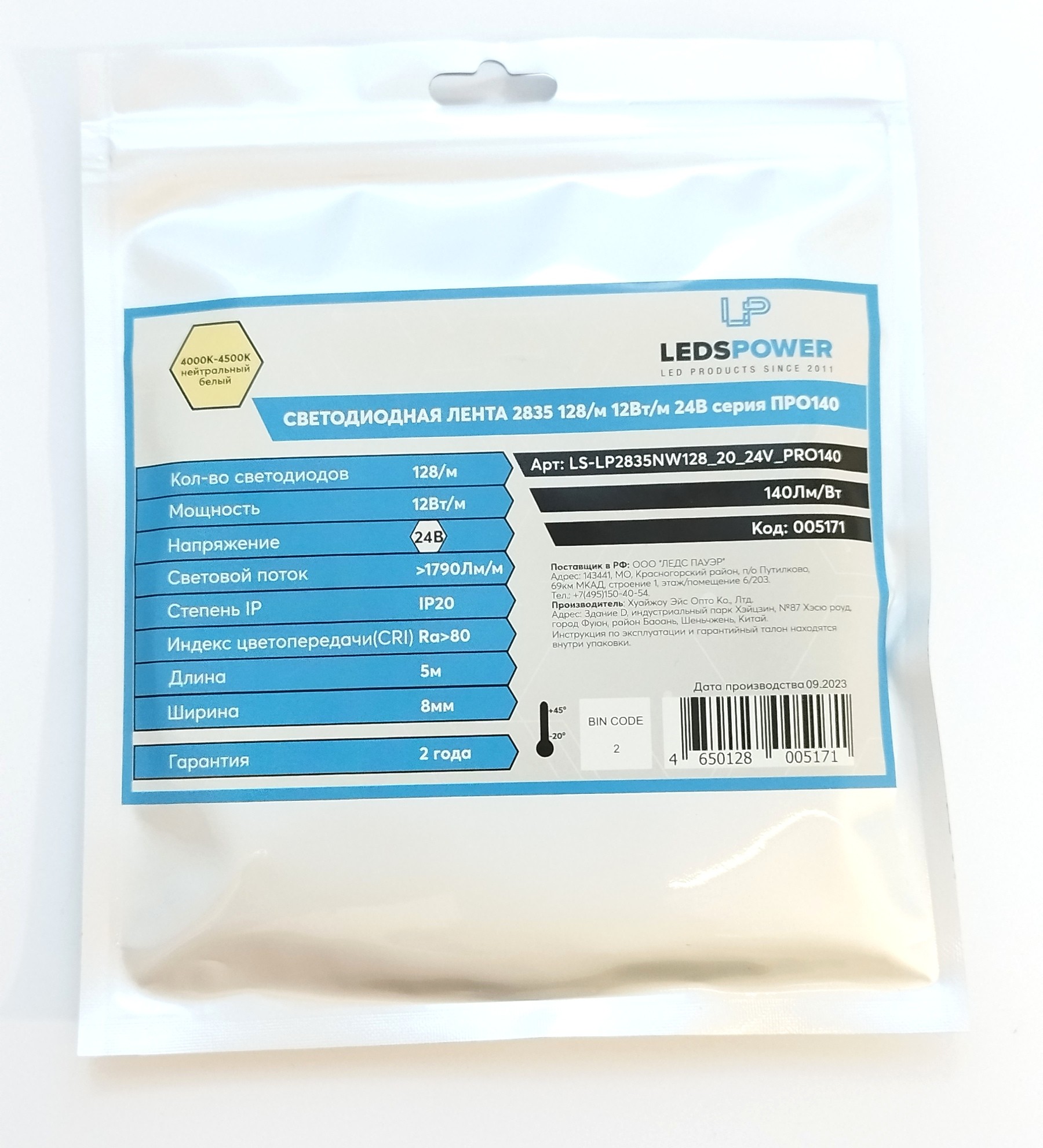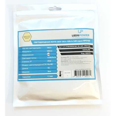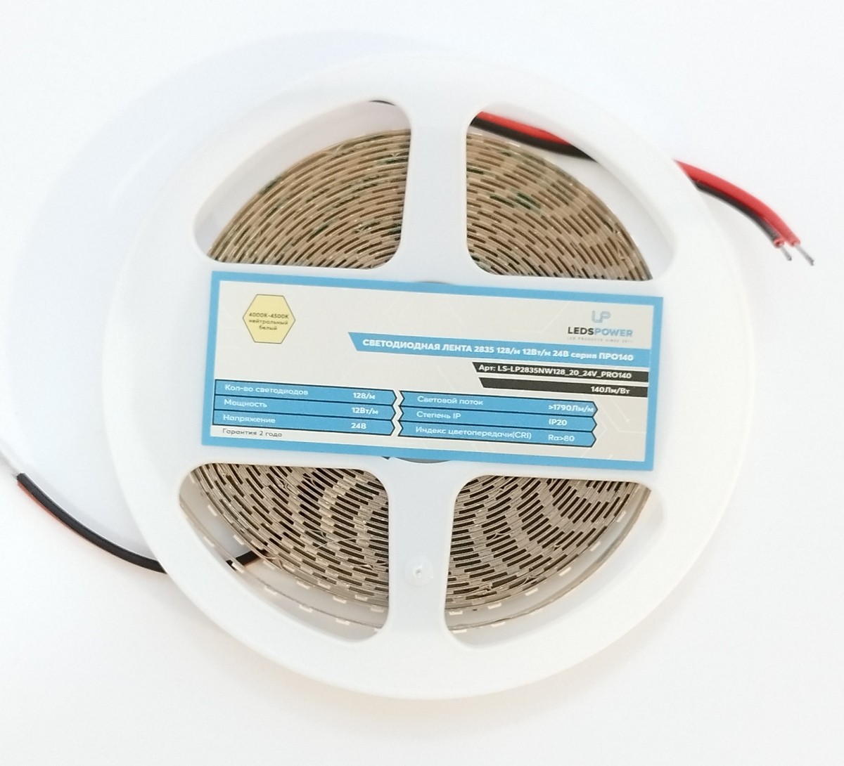 Лента светод. LEDS POWER, 12W/24V/4000K/128led, Серия PRO140 (5м.)