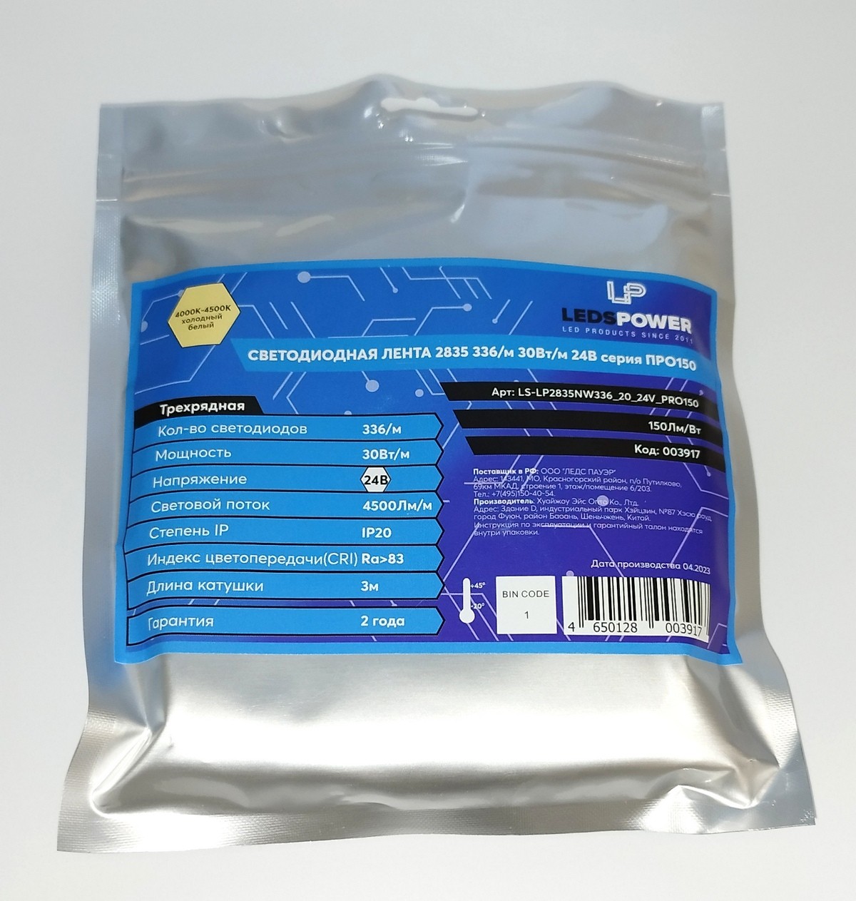 Лента светод. LEDS POWER, 30W/24V/4000K/336led, Трехрядная, Серия PRO150 (3м.)