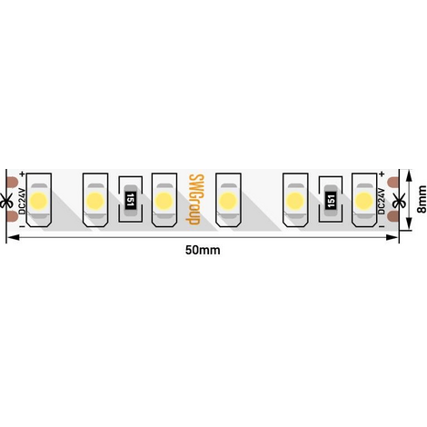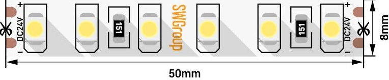 Лента светод. SWG 3M, 9,6W/24V/3000K/120led (5м.) Тёплый Белый