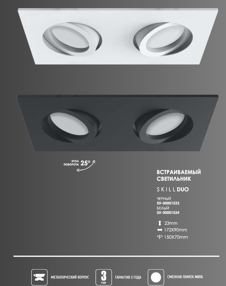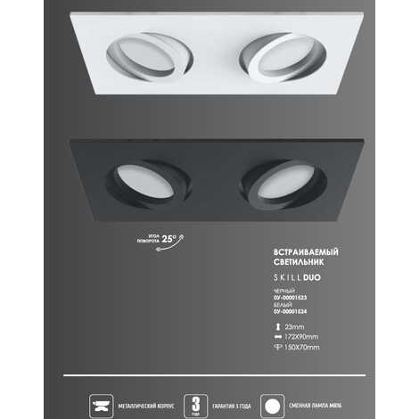 Светильник ART SKILL DUO, Встраиваемый Белый (под лампу MR16) 172х90/150х70мм.