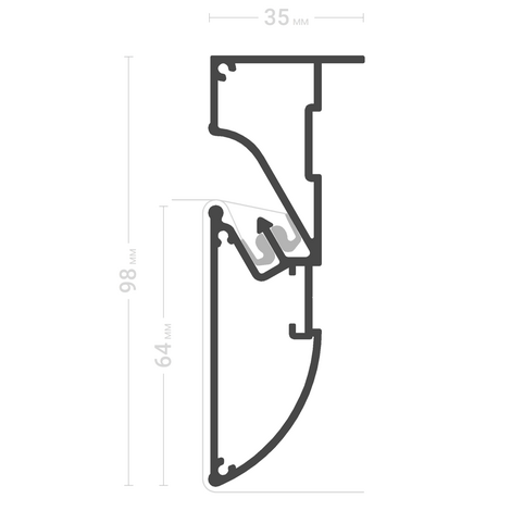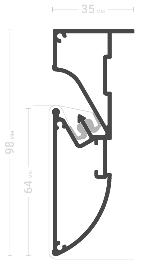 Преимущество данного профиля в том, что при создании конструкции ему не требуется основа (фанера или пластик), а самое главное, что не требуется дополнительных профилей, вся конструкция монтируется из одного профиля.