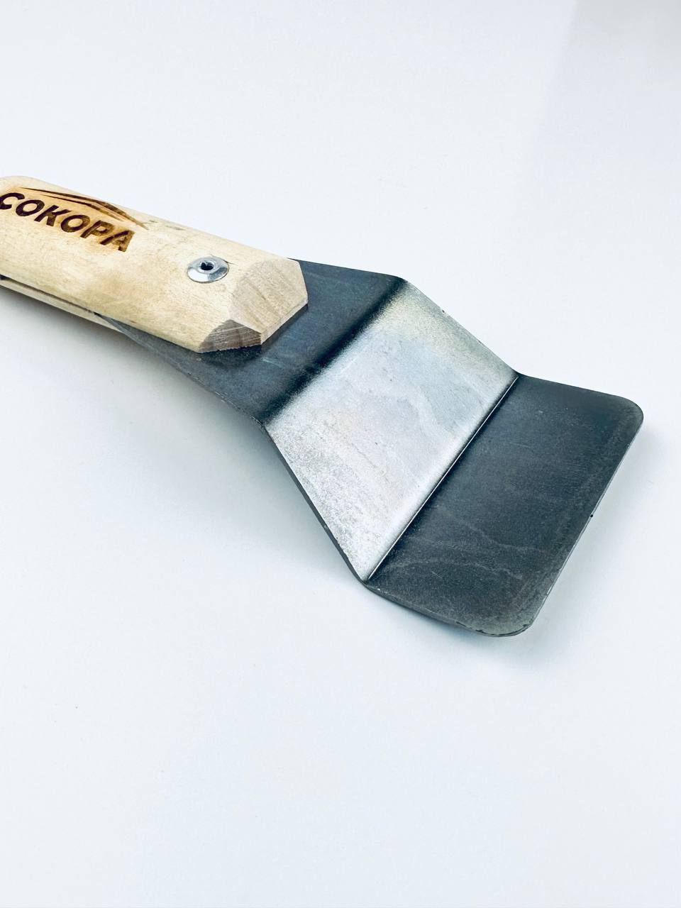 Малый шпатель подходит для установки любых видов натяжного потолка. Применяется для фиксации полотнищ в профиле, расположенном в нише за оконным карнизом, позволяет мастеру не цеплять рукой элементы конструкции. Данный шпатель подходит для любых видов профилей с гарпунной системой.