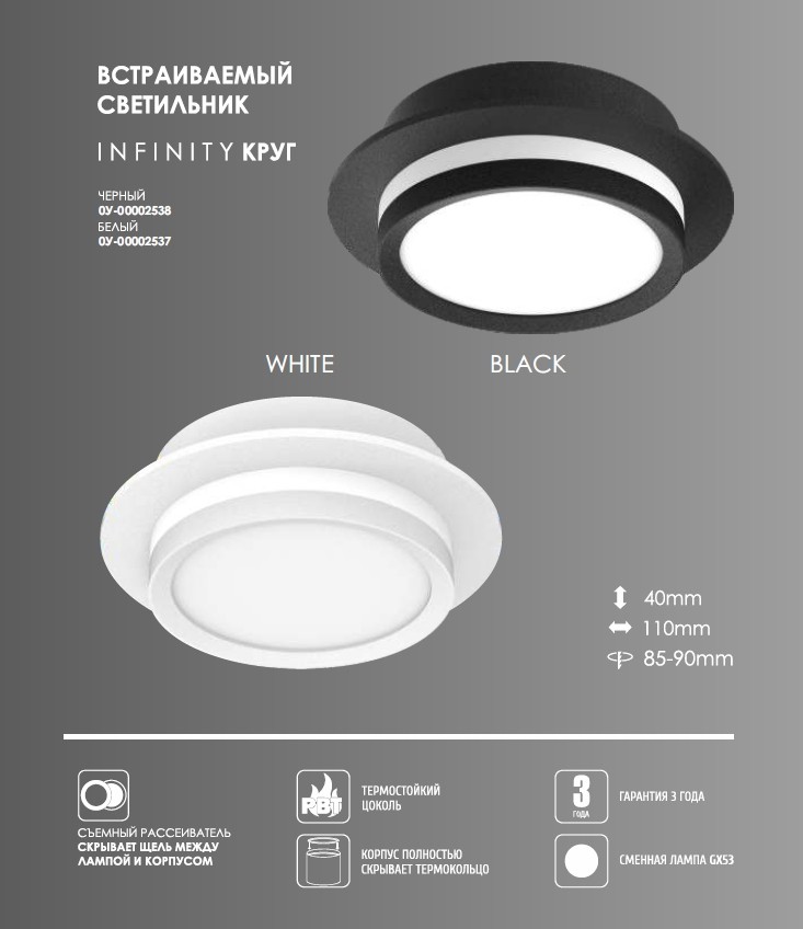 Светильник ART INFINITY КРУГ Встраиваемый Чёрный (под лампу GX53) 110х40