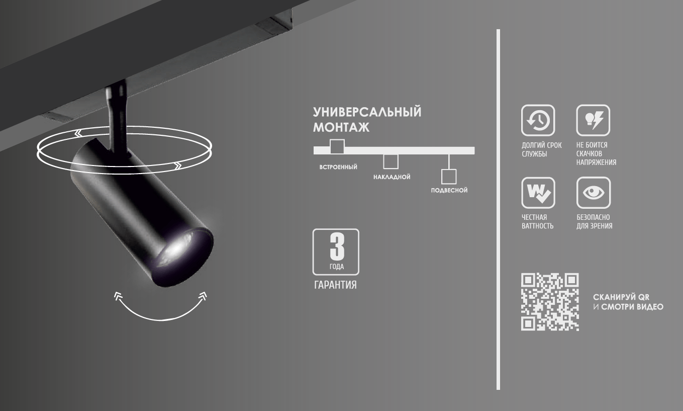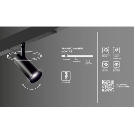 Светильник для трековой системы COLIBRI, RIO, Чёрный, 12W, 4000К, 1100Lm, D50х100